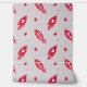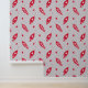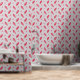 This cute wallpaper features a pattern made of hand drawn red space rockets.