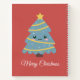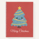 Red Spiral Notebook with a Kawaii Christmas Tree