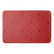 This rug is just as pictured! Vibrant Red and very soft material, nice to step in out of the tub! Matches my set of accessories and shower curtain! A must have to add some whimsy to your bathroom! Very nice, vibrant and clear print! Beautiful!