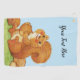 This golf towel has a cute red squirrel with a fluffy tail and rosy cheeks about to eat his stash of nuts and acorns while sitting in green grass under a blue sky. Customise your text with the template.