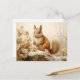 This is a very cute postcard that represents a red squirrel sitting in the snow in a beautiful winter setting. Next to the forest animal are some white flowers. The colours are vintage and add a touch of nostalgia and sweetness to the art.