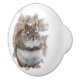 This ceramic door knob features an adorable little red squirrel with brown and white fur in the winter snow.