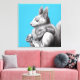 Red Squirrel with Gray Squirrel Fur Scarf (Blue) Canvas Print