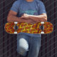 Red stained, scratched, gold grid or brick effect? skateboard