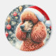 Cute Watercolor Red Standard Poodle Christmas Magnet with vintage tones and a Christmas tree in the background. The perfect gift for poodle lovers who own a red standard poodle.
