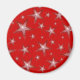 Modern design with shining, sparkling red and white stars on a red background. Fridge magnet with a red and white customisable design for you to personalise with your own text, images and ideas. Created by Jess Perry using original photographs and digital techniques.