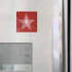 Modern design with a shining, sparkling red and white star on a glowing red background. Fridge magnet with a red and white customisable design for you to personalise with your own text, images and ideas. Created by Jess Perry using original photographs and digital techniques.
