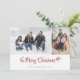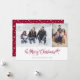 Custom red Merry Christmas photo cards featuring two photos with a calligraphy title on the front and a red background accented with stars at the back. Easily personalise these red calligraphy Christmas photo cards with your images, a family name and the year.