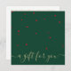 Tiny red stars pattern on green background makes an understated but festive holday gift certificate
