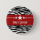 Trendy and modern Stars Zebra Print Sweet Sixteen Button featuring a chic black and white zebra print background and a bold red border adorned with a fun star motif. This girly button is a hip and stylish choice for a fun sweet 16 party favour. Easy to customise, simply add party details in the text fields provided. Click "Customise It" to find more personalisation options.