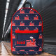 Bright red puffing steam train boys backpack. Personalise with your child's name, perfect for library or school. Currently reads Daniel and Daniel on boiler plate plus Daniel - Super Ferroequinologist along the top flap. Part of the kids graphic steam train range. Background colour can also be changed to your own colour choice currently in dark blue. A perfect gift for boys to take to school or as a gift to a train or railway transport fan. Original steam train graphic art and design by Sarah Trett exclusively for www.mylittleeden.com on zazzle.