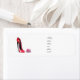 Red Stiletto Shoe and Rose Label