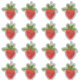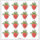 Bright red strawberry with green leaf is depicted against a white background emphasizing its vibrant colour on the sticker sheet.