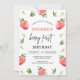 Red Strawberry Daisy Berry Sweet 1st Birthday Invitation