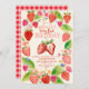 Red Strawberry Gingham Berry Sweet Birthday Invitation