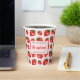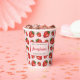 Destei's pattern of red strawberries on a light pink background colour. There are also three personalizable text areas. This design is ideal for summer time, for example.