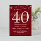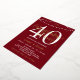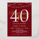 Deep red 40th wedding anniversary dinner party invitation with white and gold foil details. String lights anniversary dinner invitation without photo with the years you've been married in a white font and your names in gold foil against a deep red background. Elegant fortieth wedding anniversary dinner invitation personalised with your names in gold foil against a dark red background.