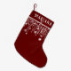 Red and white string lights sparkles Christmas stocking with a cute whimsical fun lights and name for a festive Holiday season.