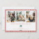 Wish friends family Happy Holidays with a personalized horizontal red and green Christmas DIY photo Christmas card showcasing your family on the front over a red striped pattern and a watercolor green bow, and a back side with 3 family pictures and an editable note.