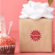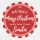 A Christmas postal style sticker for gifts. The design has stripes around the border in red and cream and it says 'From Santa' across the front, with a festive red background. The sticker is designed to look like a postmark or a seal from the North Pole. This would be perfect to label Kids presents, decorate Christmas gifts or to seal the envelopes on a Christmas card.