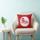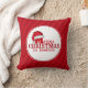 Add festive holiday style to your home with this personalised Merry Christmas throw pillow featuring a cheerful Santa hat design and classic red striped background. The decorative circular badge with customisable family name creates a cosy seasonal accent perfect for Christmas decorating.