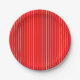 Red Striped paper plate features red and white stripes simply. © Morning 6