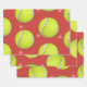 Red Striped Tennis Christmas Balls & Snowflakes Wrapping Paper Sheet