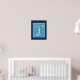 A poster with a nautical theme. Dark blue background with a light blue frame layered over top. Positioned inside the frame is a red striped lighthouse and a beach ball, and a smiling sun and flying seagull off in the distance.