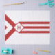 Stylish geometric pattern features bold red stripes on a white background. Three alternating red and white chevrons end at a white diamond outlined with red. It looks like a stylised medal hanging from a ribbon. The diamond contains a customisable monogram. Three red stripes extend from the opposite side of the diamond to the edge of the design. The outer thirds of the pattern are white.