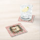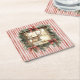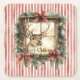 Red Stripes Bows Christmas Deer in Window Square Paper Coaster