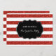 New Year's Eve party invitations in glamourous red glitter effect stripes pattern with black and white details. Please note glitter is photographic effect only.