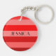 Keychain with a vibrant clear red striped pattern and personalised name print. Matching accessories available. Personalise it by typing your name in the template field.