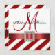 Red Stripes, Ribbon, Monogram Wedding Invitation
