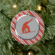 This holiday keepsake ornament features a red snowboarder on a grey background within a Christmas red and white candy striped pattern. The striped frame has an inside silver printed lining. The other side has the same stripe border with three text fields for you to customise on the white interior. A perfect gift for the snowboard enthusiast!