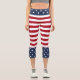 Red Stripes with Blue and White Star Waist Capri Leggings