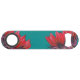 red sunflower sideview turquoise speed bottle opener is a bar tool for opening beer bottles and glass bottled soda. could be a nice gift for someone in the service industry such as a bartender aka mixologist, beertender, cocktail waitress, barback, waiter, or waitress. many other cute styles and colours within this shop to choose from, or to start a bottle opener collection.