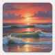 Red Sunset Ocean Seascape Painting Artwork Square Sticker