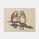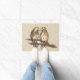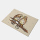 Doormat features an original marker illustration of a pair of red-tailed hawk lovebirds in the snow. Perfect for Christmas decorating!
