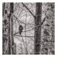 A black and white photograph of a hawk perched on a branch in a group of trees. Image Copyright ©2024 Kimberly J Tilley. zazzle.com/store/developingnature