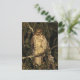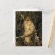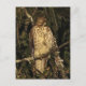 This postcard features a female Red-Tailed Hawk (Buteo jamaicensis). One of the most widespread and commonly observed birds of prey in North America, this fierce hunter is perched on a branch high up in some evergreen spruce trees, patiently waiting for a meal to appear. Her head is brown and the creamy white breast has brown spots. The red tail only is seen from the back.