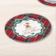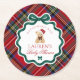 Red Tartan Plaid Christmas Bear Baby Shower Round Paper Coaster