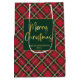 Red Tartan Plaid Gold Script Merry Christmas Medium Gift Bag
