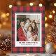 Red Tartan Plaid with Christmas Family Photo Holiday Card