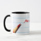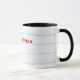A handwritten style mug with a bright red coloured teacher's correcting pencil laying on a white sheet of lined school paper. Personalise this scholastic design by signing your name. Perfect for writers, teachers, or students in middle school or junior high.