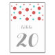 Cute and trendy Confetti Wedding Table Number Card with fun confetti dots in red and teal. This simple and modern table card can be easily customised with your wedding information. Find more customisation options by clicking Customise It.