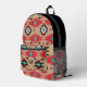 This colourful backpack has a beautiful Native American pattern in red, teal, black, yellow, and brown. Your monogram is in black on a matching tan circle banner on the pocket. A distinctive pattern with a western flair! Be sure to see the matching products in our store.