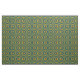This fabric has a bright teal and yellow patterned design. It's perfect for making your own clothes or decorating the home!