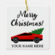 Red Tesla pickup truck with Christmas tree retro Ceramic Ornament