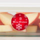 Red textured design with white and off white snowflakes Christmas sticker. The design features a red texture background with snowflakes and the text "Merry Christmas".