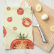 Stylish kitchen town features a fun and whimsical tomato illustration pattern; juicy red tomatoes on a light background with green accents. A stylishly fun and whimsical addition to your kitchen towel collection, thoughtful modern home gift for the cook in your life, or stylish kitchen gift for any occasion.